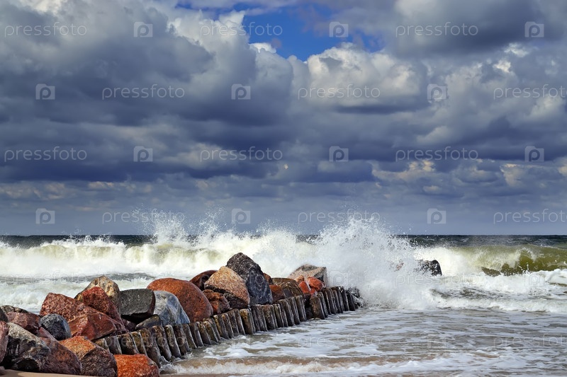 Штормовая Балтика и волнорез