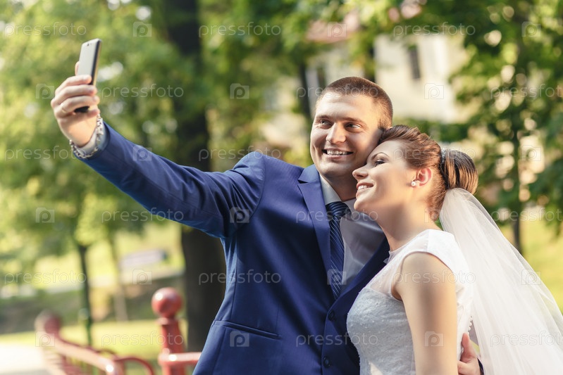 Невеста и жених сделают селфи