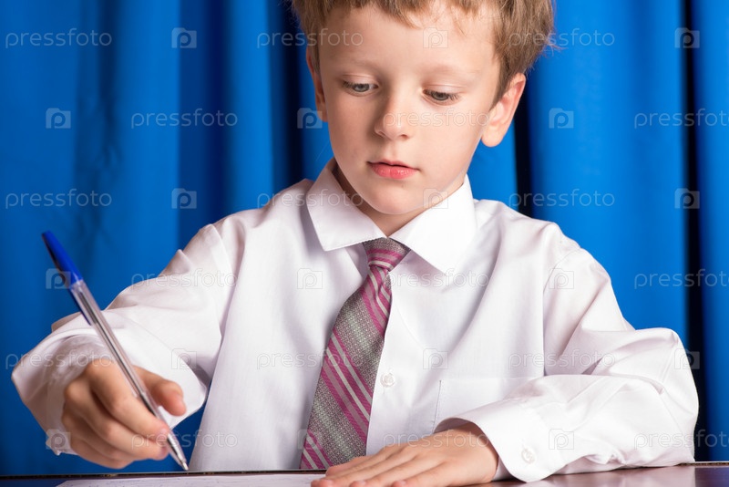 Мальчик пишет на листе бумаги