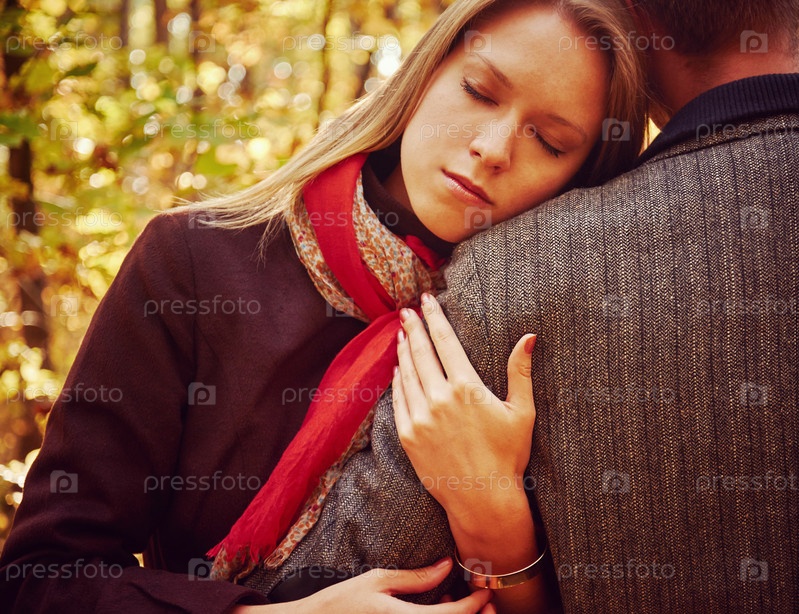 Женщина обнимает человек в Осенний парк