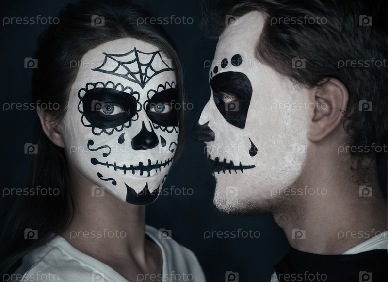 Пара в любви с Хэллоуин лицо искусства
