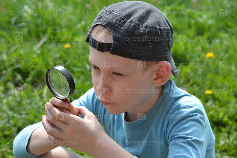 Подросток с увеличительным стеклом
