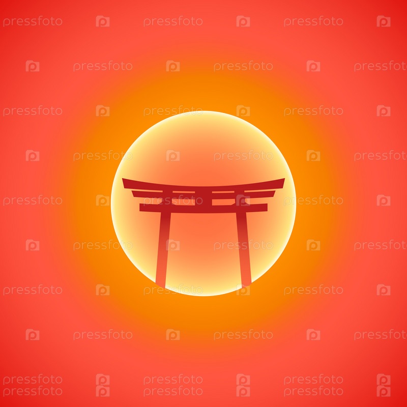 Вектор ворота плоские абстрактный Японии, пылающий закат солнца иллюстрации значок
