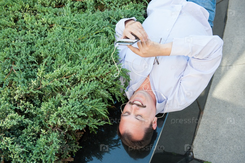 Мужчина слушает музыку на телефоне