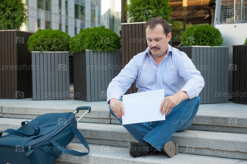 Мужчина с пустой табличкой на улице