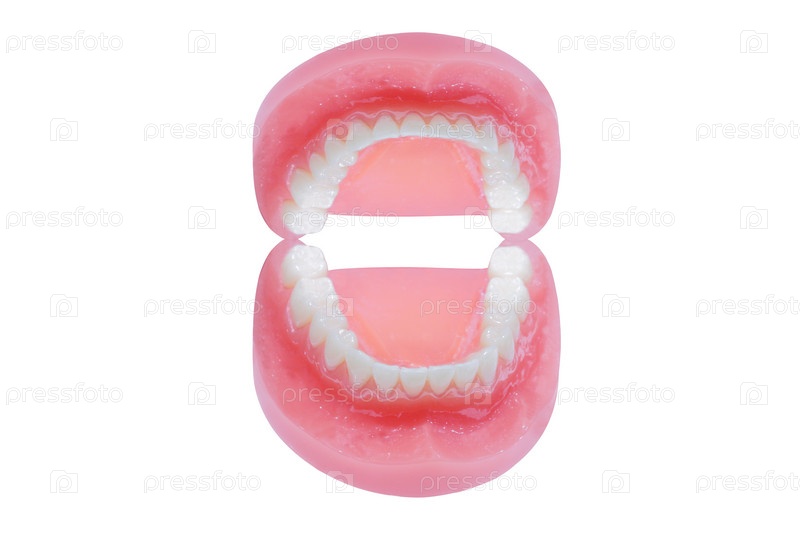 Вставные челюсти на белом фоне