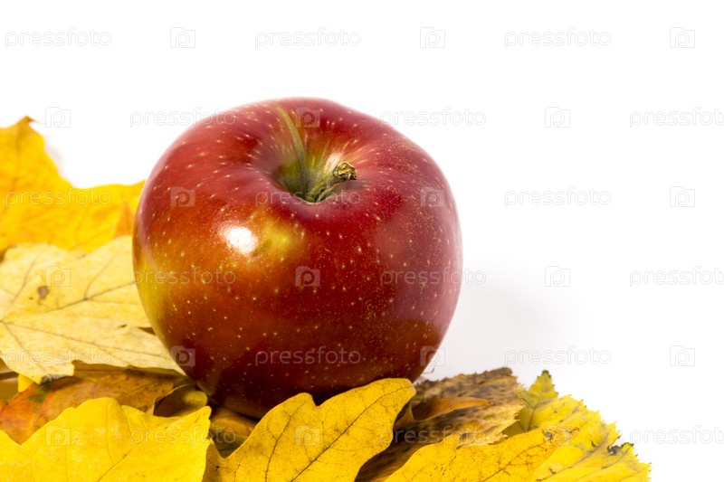 Яблоко и осенние листья
