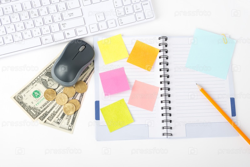 Офисные принадлежности и деньги