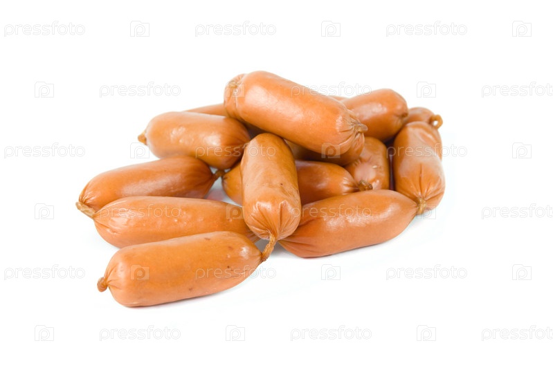 Связка сарделек, изолированная на белом фоне