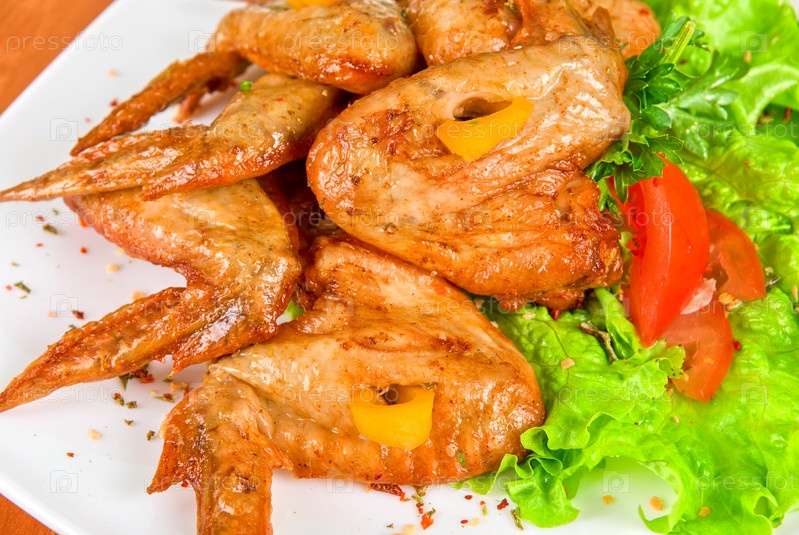 Жареные куриные крылышки с зеленью и томтами