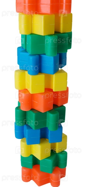 Пирамида построена из цветных кусочков головоломки на белом фоне
