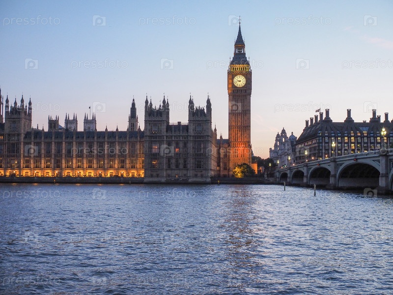 Вестминстерский дворец ночью в Лондоне, Великобритания