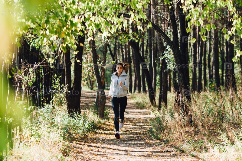 Женщина бегун трусцой в Осенний парк