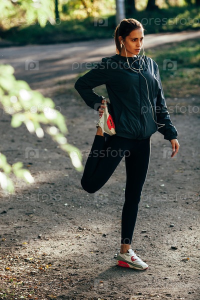 Женщина, разогрев на стадионе