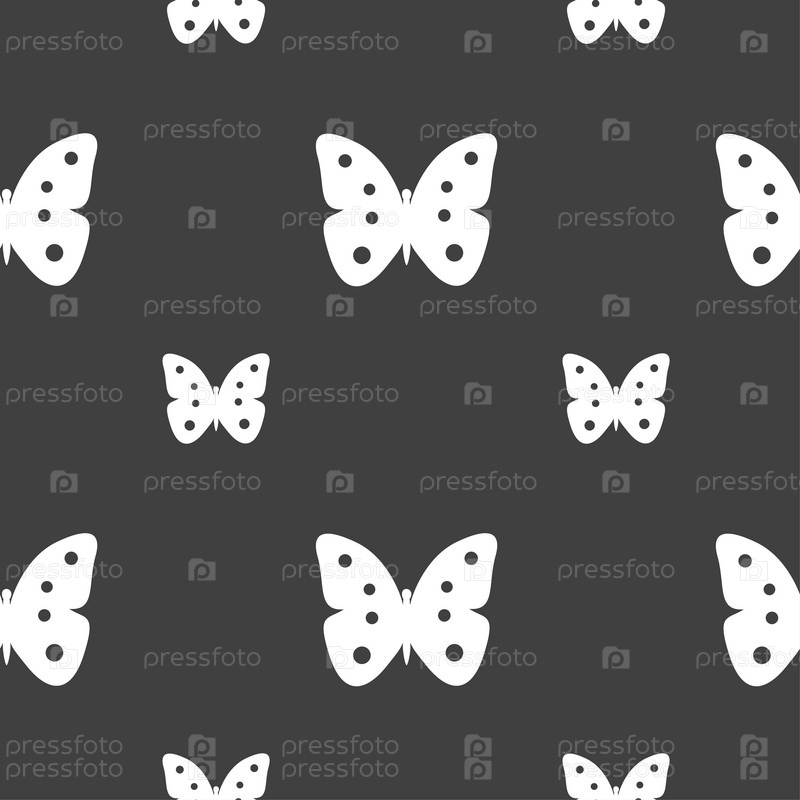 Бабочка. Бесшовный узор на сером фоне. Вектор