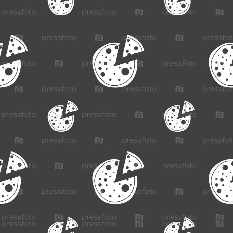 Пицца значок. Бесшовный узор на сером фоне. Вектор