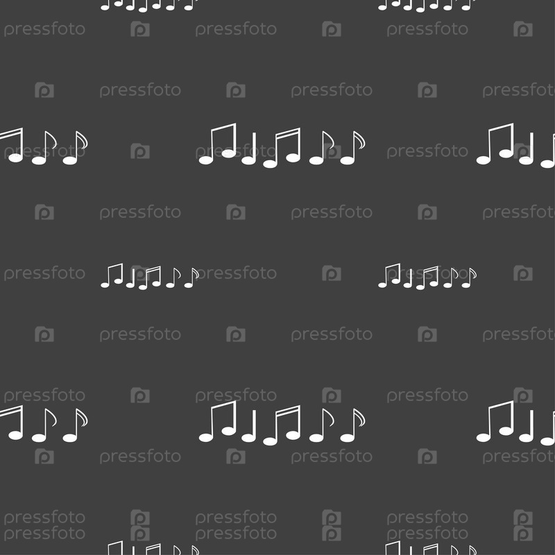 Музыка. Бесшовный узор на сером фоне. Вектор