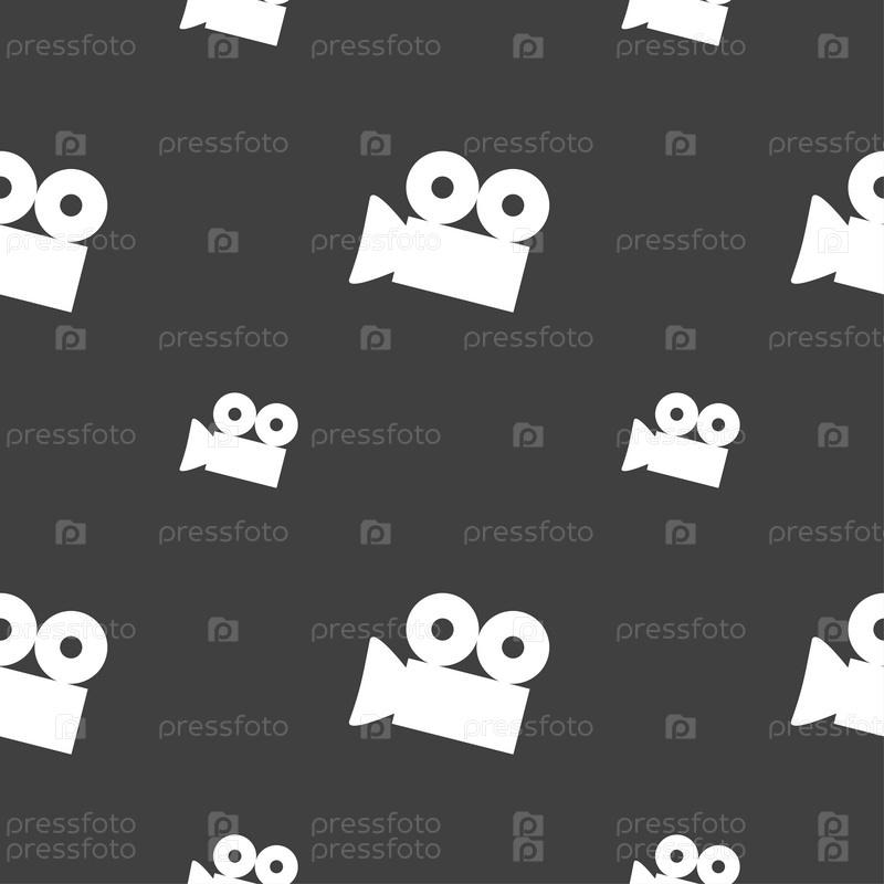 Иконка Видеокамера. Бесшовный узор на сером фоне. Вектор