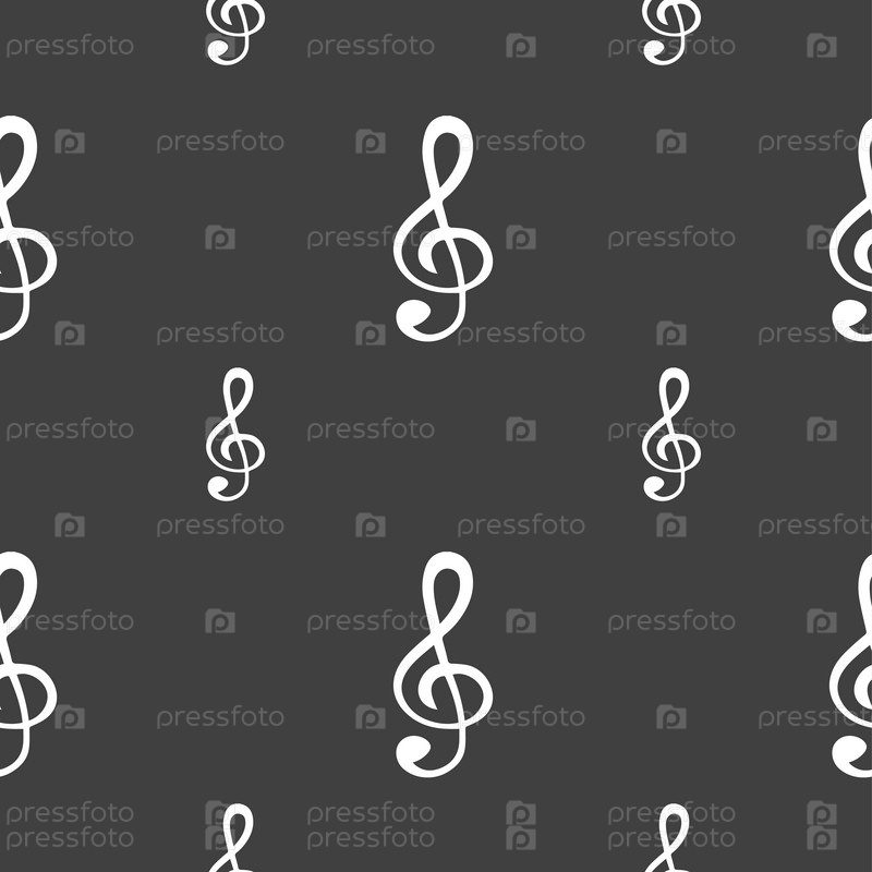 Скрипичный ключ икона. Бесшовный узор на сером фоне. Вектор