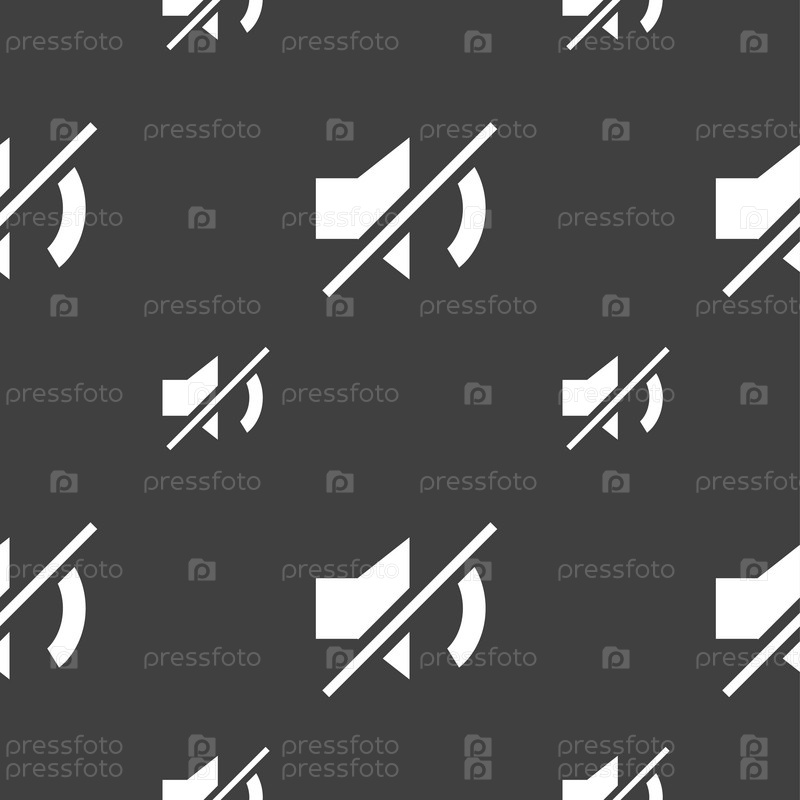 Значок звука динамика. Бесшовный узор на сером фоне. Вектор