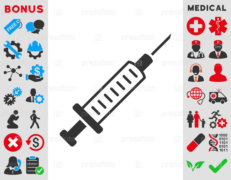 Шприц иллюстрации значок. Стиль является биколор плоский символ, голубой и серый цвета, закругленные углы, белый фон