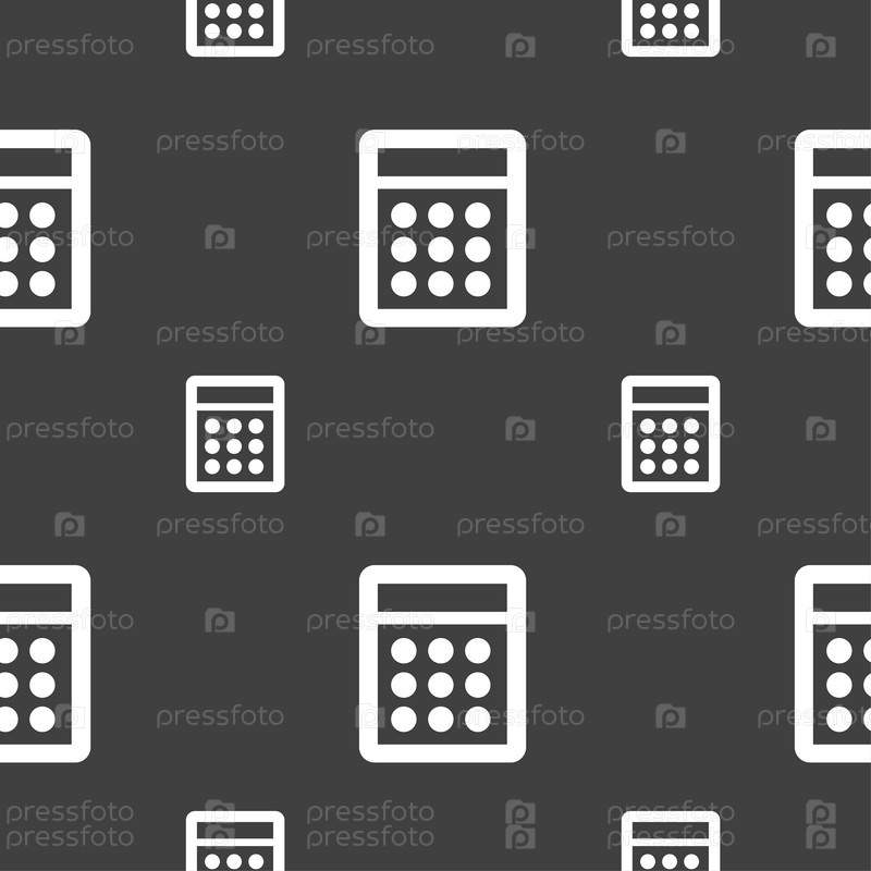 Иконка Калькулятор. Бесшовный узор на сером фоне. Вектор