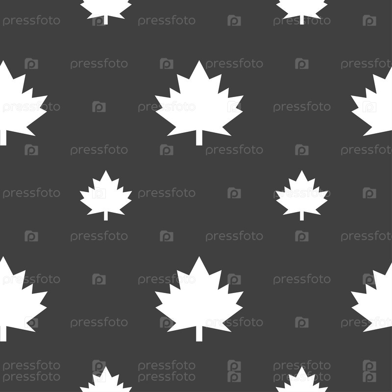 Кленовый лист значок. Бесшовный узор на сером фоне. Вектор