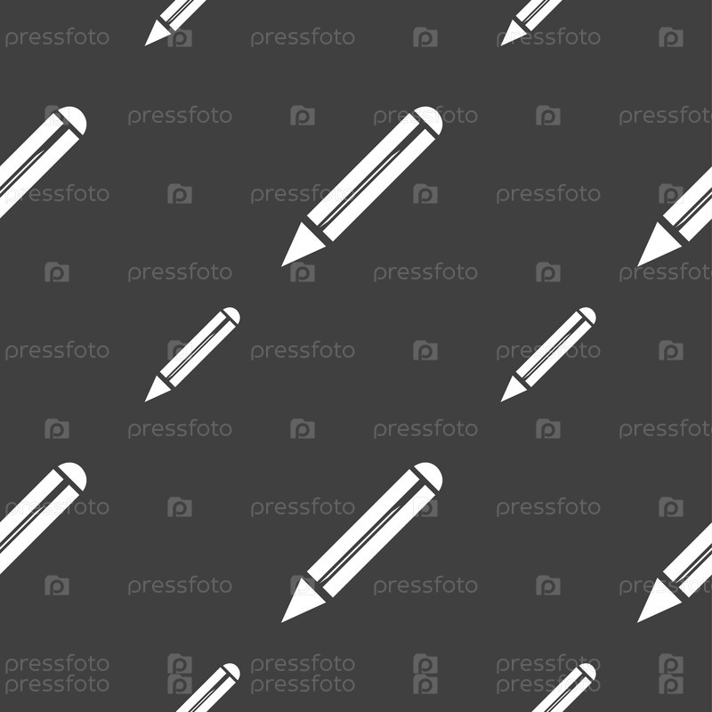 Значок карандаша. Бесшовный узор на сером фоне. Вектор
