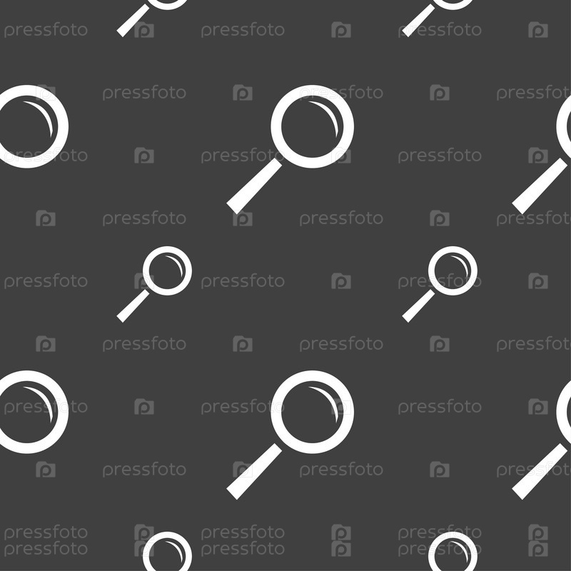 Значок лупы. Бесшовный узор на сером фоне. Вектор