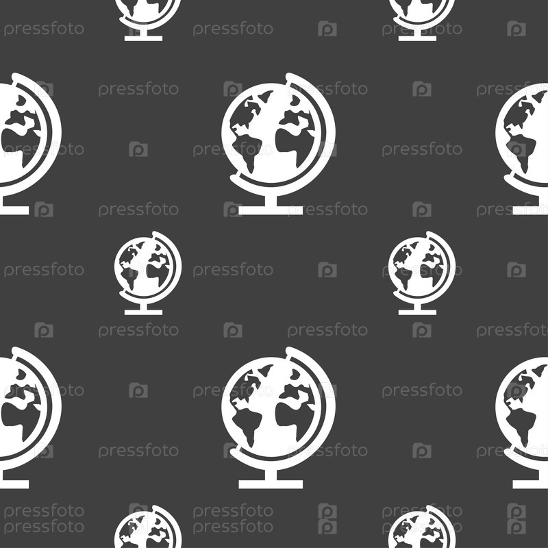 Глобус. Бесшовный узор на сером фоне. Вектор