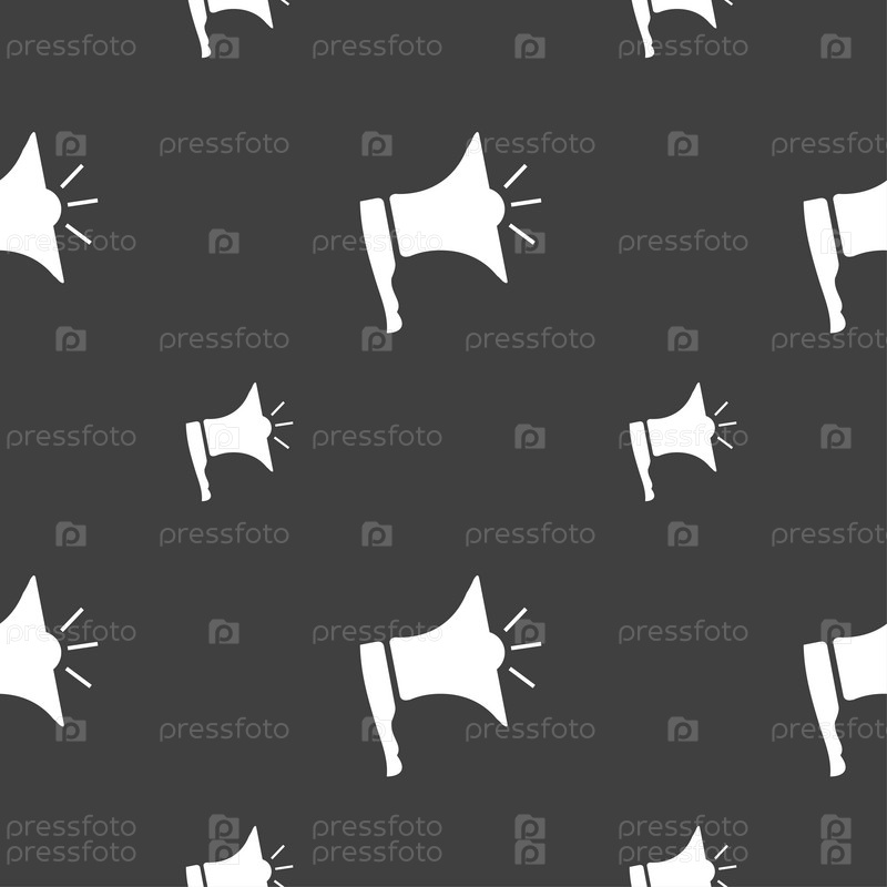 Громкоговоритель. Бесшовный узор на сером фоне. Вектор