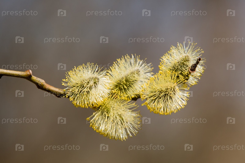 Сережка вербы крупным планом, весна
