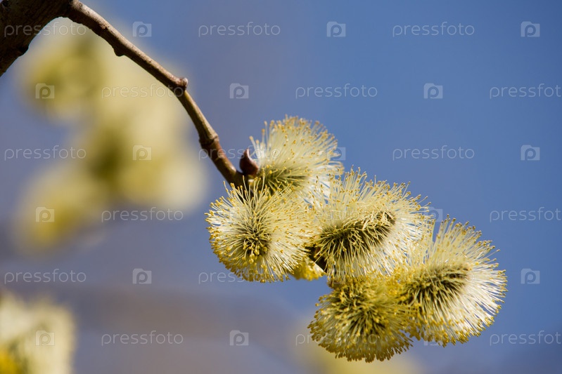 Сережка вербы крупным планом, весна