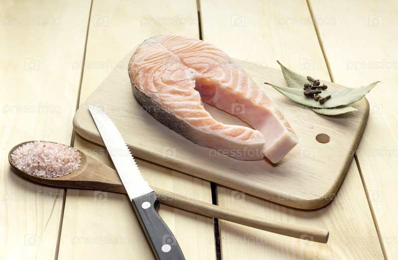 Кусок лосося на деревянном столе