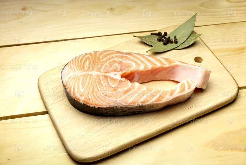 Кусок лосося на деревянном столе