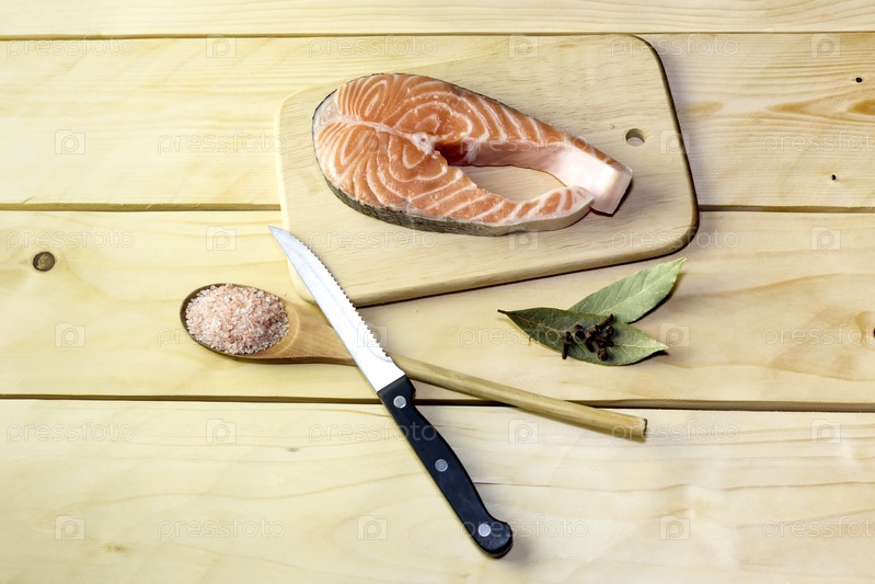 Кусок лосося на деревянном столе