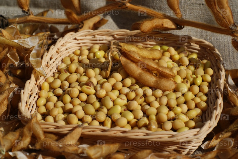 Много бобов в плетеной корзине