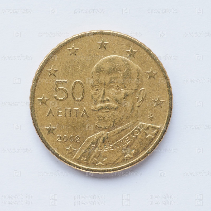 Валюта в Европе 50 центов Монета из Греции