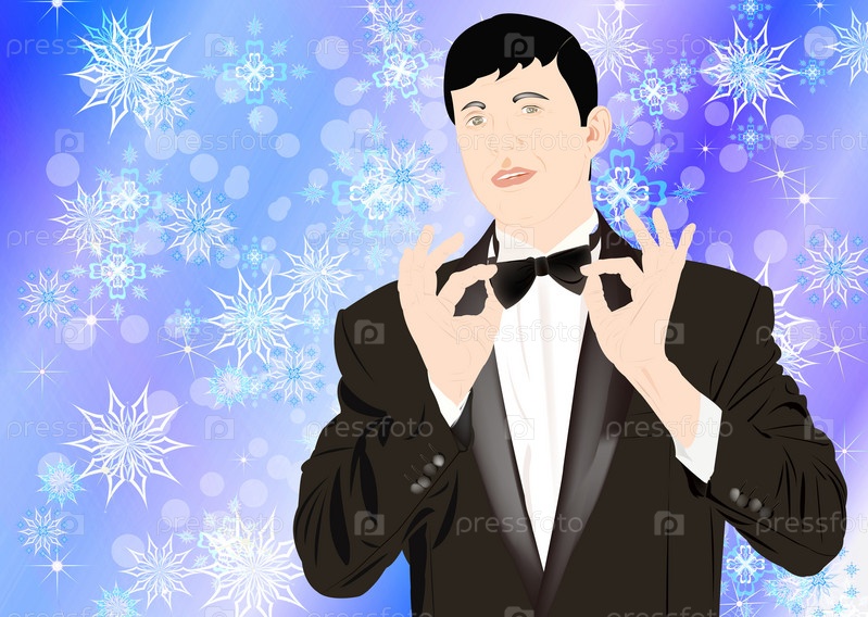 Праздничный элегантный мужчина в смокинге на абстрактном фоне