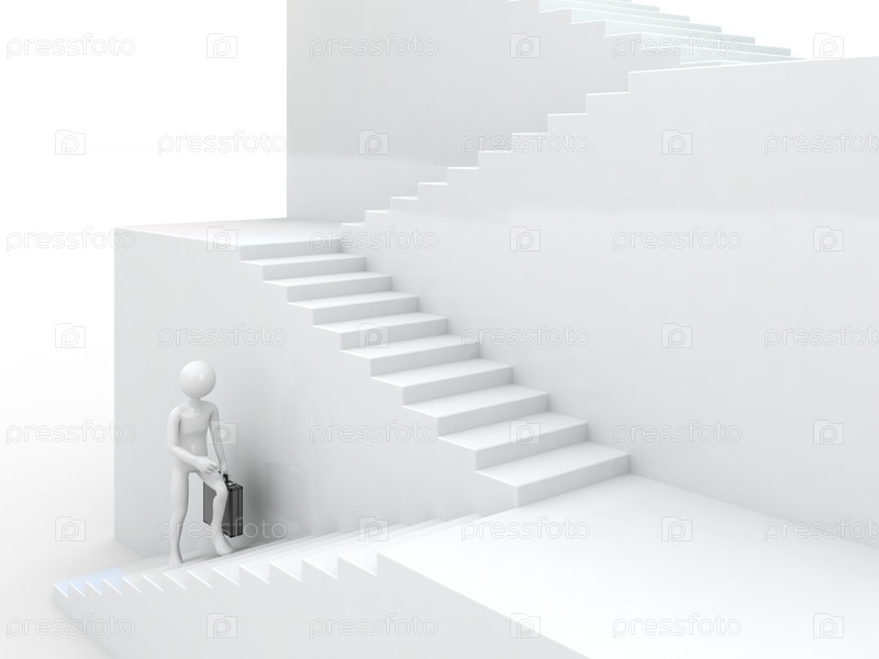 Абстрактное изображение бизнесмена, идущего вверх по лестнице