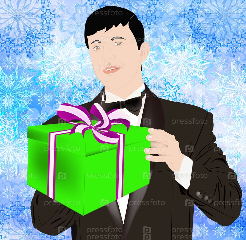 Праздничный подарок от элегантного мужчины в смокинге на новогодний праздник