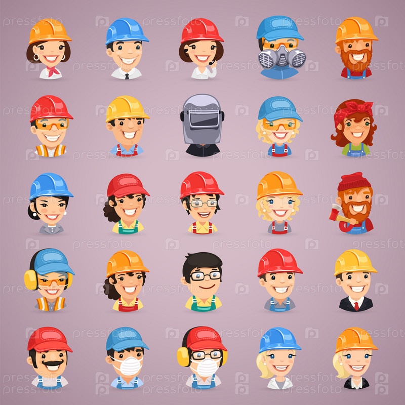 Набор иконок персонажи мультфильма строители