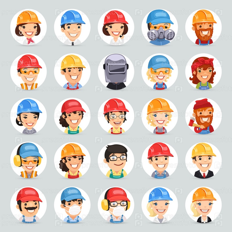 Набор иконок персонажи мультфильма строители