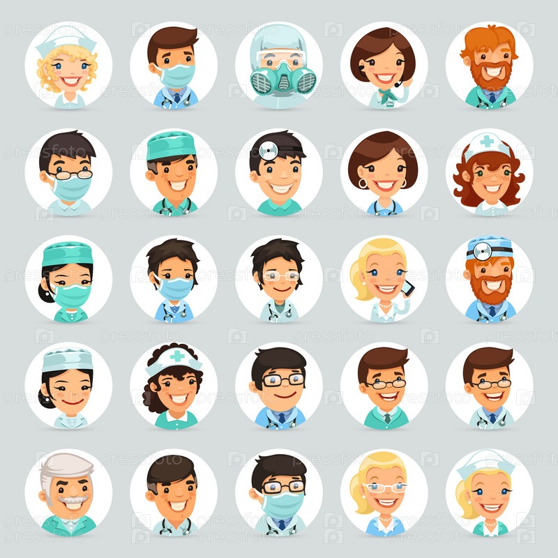 Набор иконок персонажи мультфильма врачи