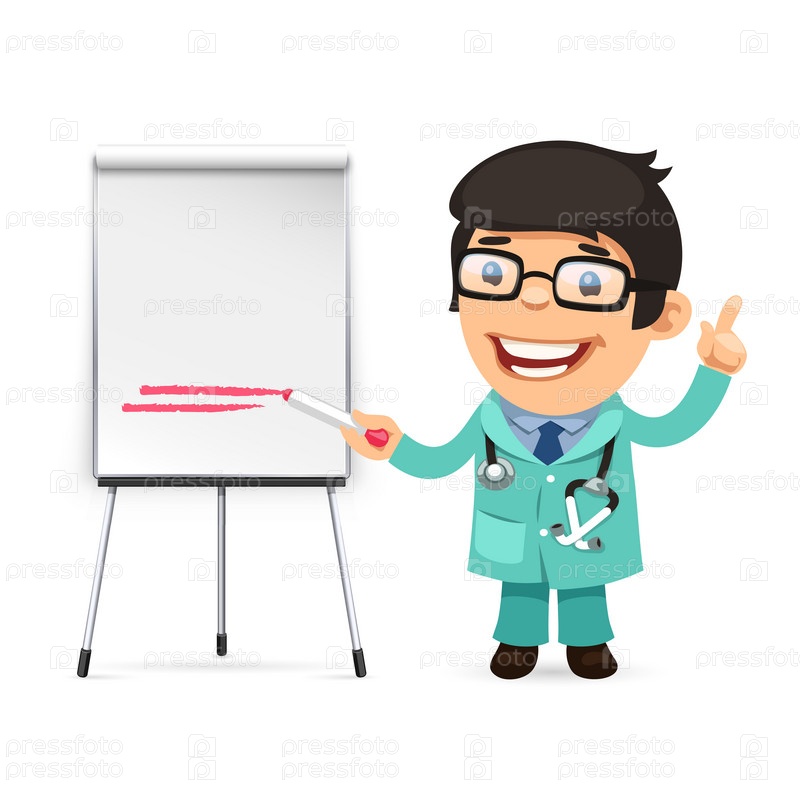 Доктор с маркером перед флипчартом