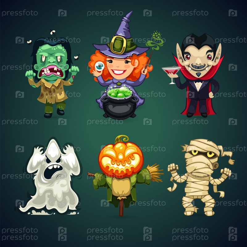 Набор векторных персонажей на Хэллоуин