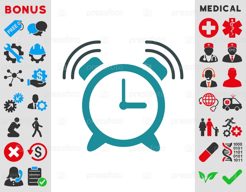 Иллюстрация значок будильника кольцо. Стиль-биколор плоский символ, мягкого синего цвета, закругленные углы, белый фон