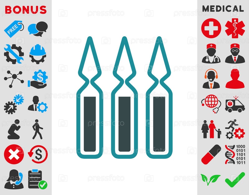 Ампулы иллюстрации значок. Стиль-биколор плоский символ, мягкого синего цвета, закругленные углы, белый фон