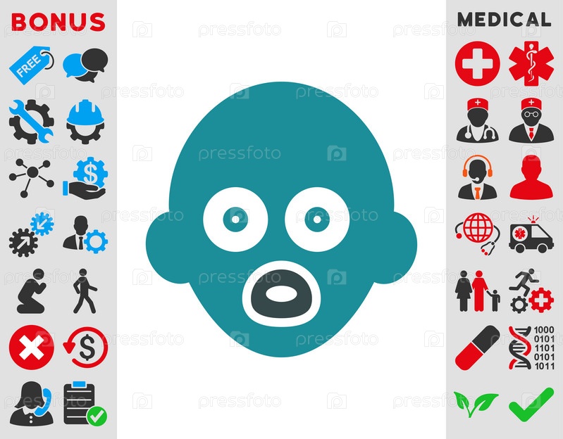 Детские головы иллюстрации значок. Стиль-биколор плоский символ, мягкого синего цвета, закругленные углы, белый фон
