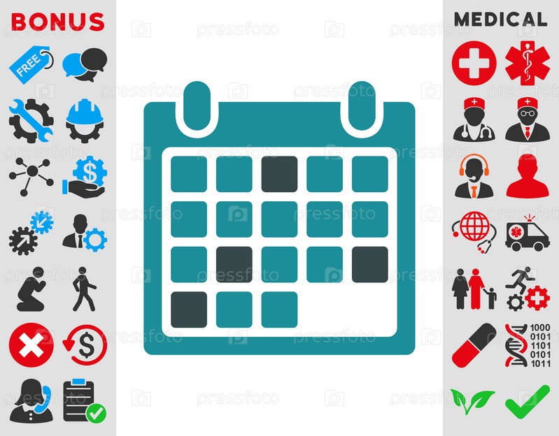 Иконка Календарь назначения иллюстрации. Стиль-биколор плоский символ, мягкого синего цвета, закругленные углы, белый фон